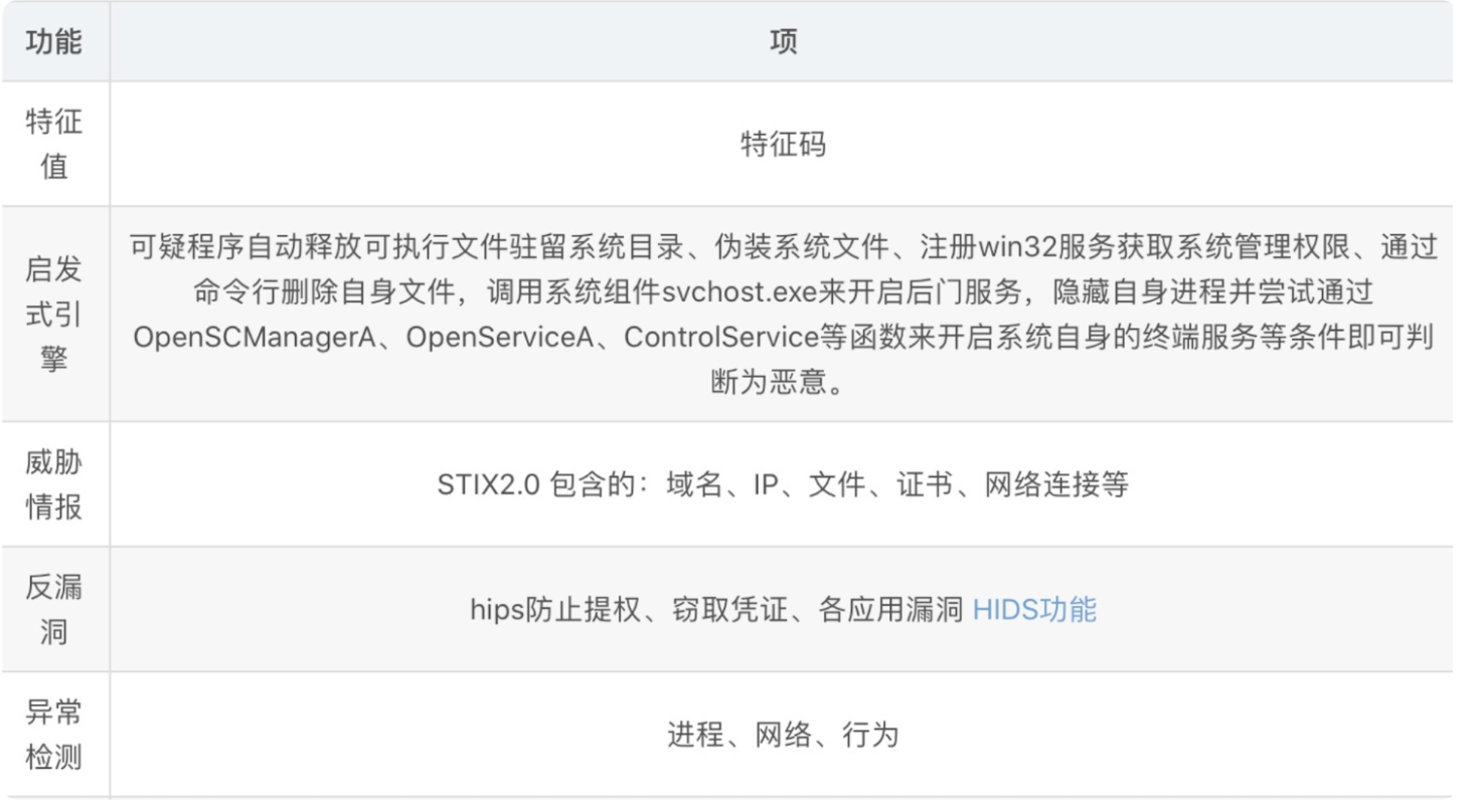 在最早期,病毒种类数量少,所以杀毒软件防病毒是哈西恶意文件获得MD5值,属于一对一对比,改动文件名都会导致MD5值的变化,所以随着病毒种类增多,md5略显乏力,但安全人员发现某些病毒有同样的特征,所以反病毒发展到了特征值匹配阶段,目前各安全厂商也在维护自己的病毒特征库,但实际上特征值更像是md5的升级版,无非是从一对一升级成了一对多个。但近年来病毒变种呈指数级增长,维护特征库更新特征库这种被动防御方式效果甚微,所以反病毒进入了启发式监测,即总结病毒入侵主机后的一系列共性行为为恶意行为(此行为特征与HIDS不同,HIDS的入侵检测更多是指真实攻击者入侵主机后可能在系统层面做的恶意行为,比如可疑命令、异常登录、反弹shell、上传webshell等,而启发式检测只是总结了一些恶意文件执行后的共同行为),同时结合威胁情报信息提升了EPP的反病毒能力,但以上全部过程都是防御能力的叠加,当针对性、持续性的APT攻击增多,勒索病毒泛滥,被动的防御建设已经无法阻止病毒的渗入,为了弥补EPP的不足,就诞生了新的技术指向,即EDR, EDR 在 2014 年就进入 Gartner 的 10 大技术之列,各大EPP 厂商开始了EPP产品与EDR的融合,逐渐在后来新发布的版本中纷纷加入了 EDR 的功能,目前基于云的 EDR 部署方式正逐渐成为主流,云数据的集中提供了更强大的检测分析功能,通过整合实时数据,并能够在后端使用机器学习和其他检测技术,提升检测能力。