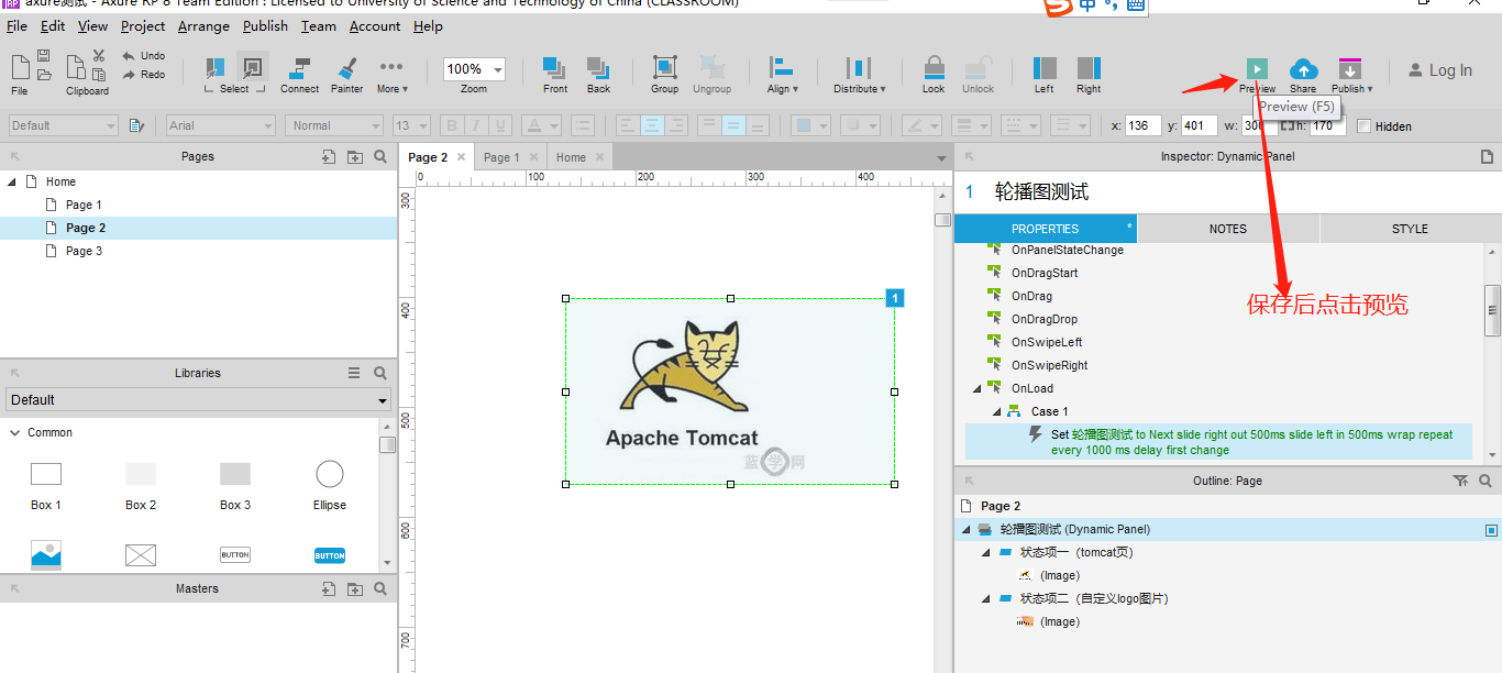 Axure RP动态面板做轮播图的粗略实现步奏12建立state双击图片元件在 选中图片 同样的操作为状态选项二选择要挂载的图片3添加javascript事件处理 版权声明:本文为zy103118原创文章,遵循CC 4.0 BY-SA版权协议,转载请附上原文出处链接和本声明。原文链接:https://blog.csdn.net/zy103118/article/details/108635114
