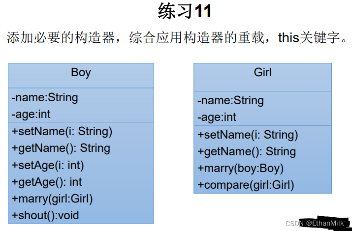 丈夫类中有一个getInfo方法,其中,能显示自己的姓名,年龄,和他的妻子的姓名,年龄