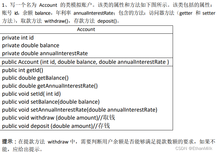 (2)取钱方法withdraw(),参数自行设计,如果取钱成功返回true,失败返回false