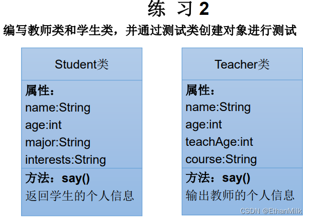 类中声明一个say方法,返回String类型,方法返回信息中包含所有属性值。