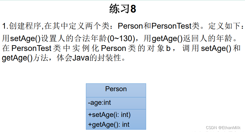 妻子类中有一个getInfo方法,其中,能显示自己的姓名,年龄,和她的丈夫的姓名,年龄