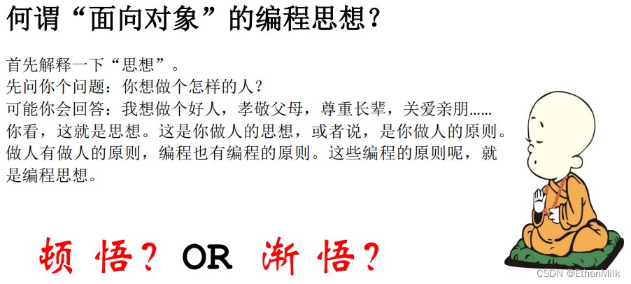 二者都是一种思想,面向对象是相对于面向过程而言的。面向过程,强调的是功能行为,以函数为最小单位,考虑怎么做。面向对象,将功能封装进对 象,强调具备了功能的对象,以类/对象为最小单位,考虑谁来做。