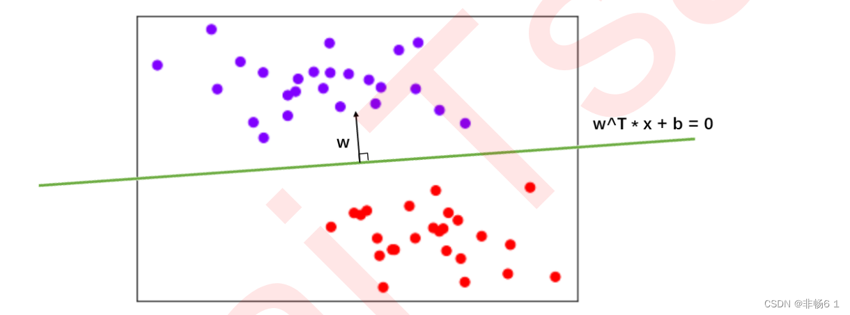 支持向量机的分类方法,是在这组分布中找出一个超平面作为决策边界,使模型在数据上的 分类误差尽量接近于小,尤其是在未知数据集上的分类误差(泛化误差)尽量小