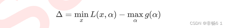对偶差异(dual gap),即拉格朗日函数的最优解与其对偶函数的最优解 之间的差值: