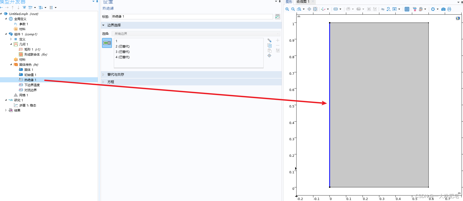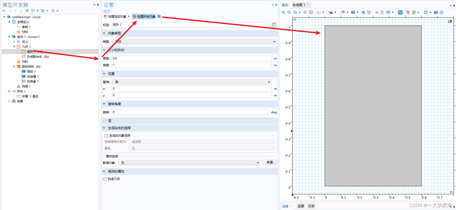 按照问题描述,为矩形设置其热导率等条件