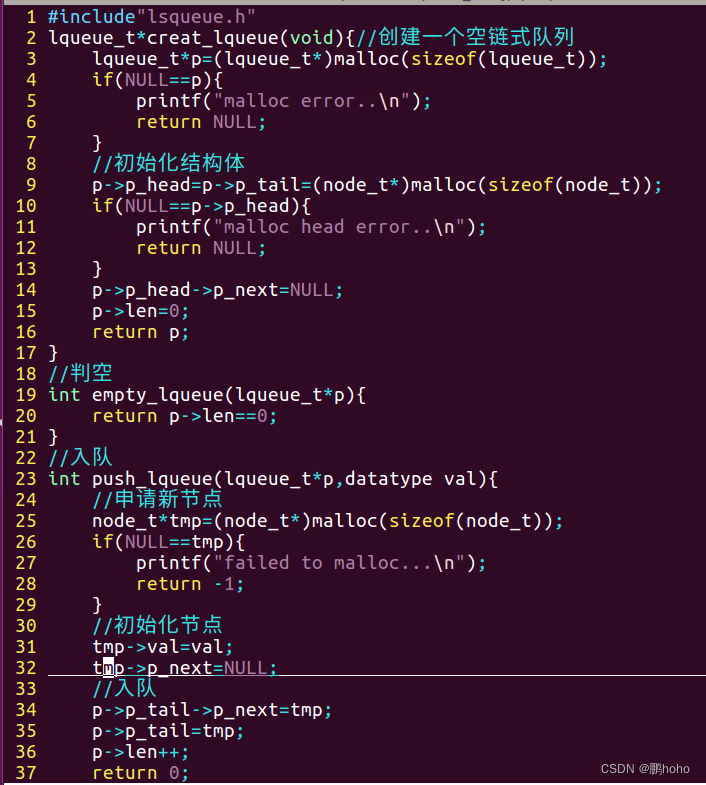 这些即是链式队列的代码实现方式,实现的代码并不唯一,链式队列的思想一致即可