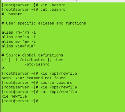 (1)vim ~/.bashrc alias xie='vim' ##用户的环境变量 切换到其他用户就不生效