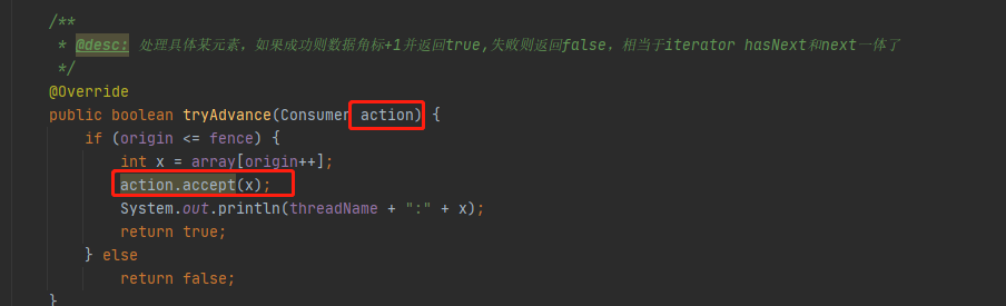 public boolean tryAdvance(Consumer action) {