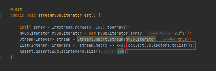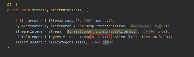 MySpliterator mySpliterator = new MySpliterator(array, "线程1");