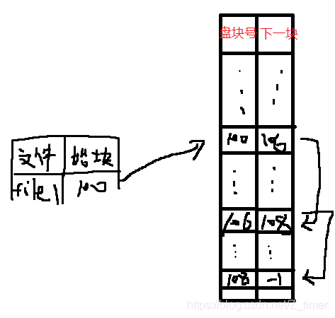 3)由上面的扩展易得,因为表项与磁盘块一一对应,所以file1的100簇号就是100号表项,同时FAT每个表项存放下一个盘块号,由图可知,106在100里,108在106里。