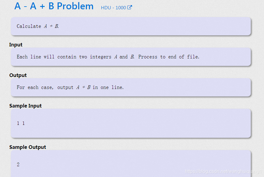 这是A题:题目中提供了问题,输入格式要求,输出格式要求,输入样例,输出样例,需要注意的就是输入样例是从控制台输入的,即要想接收这两个参数,必须从控制台输入。