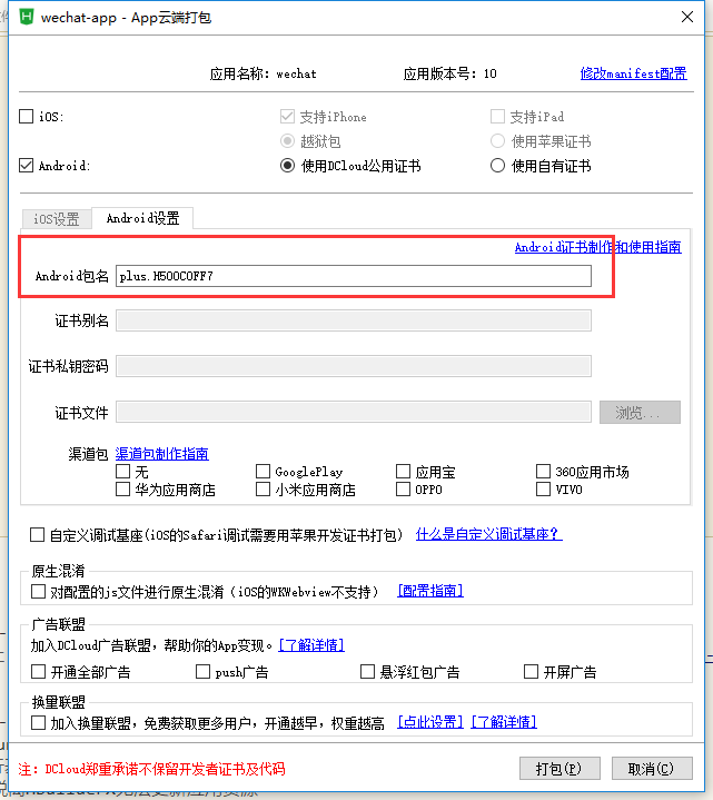 由于IOS需要成为开发者或者越狱手机采用使用,因此我们可以暂时先只打android包。