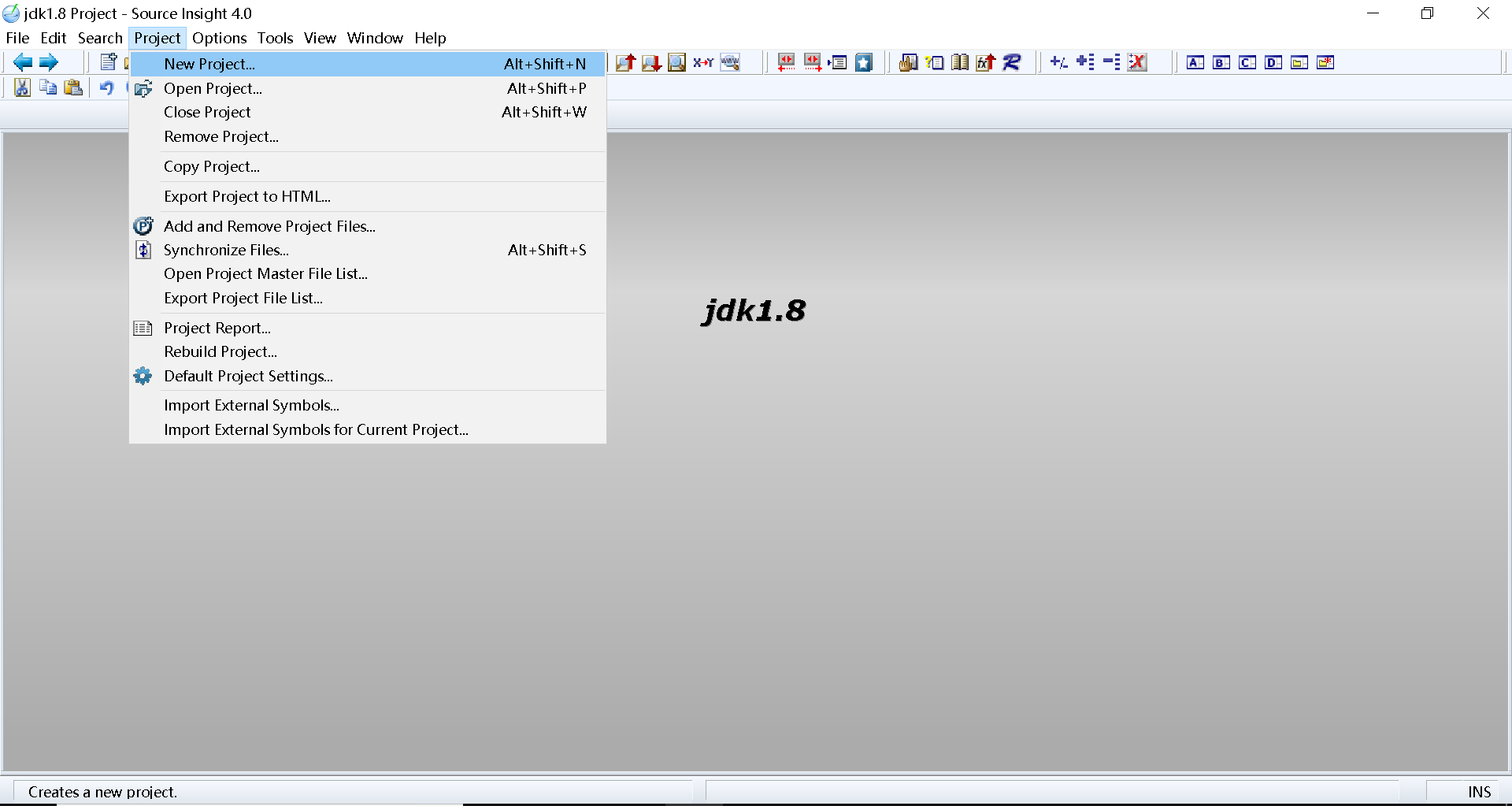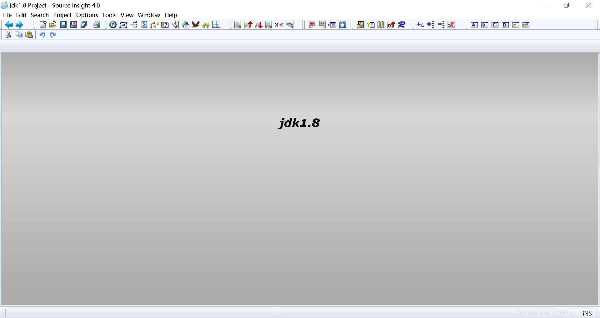 1.打开source insight 界面因该是下面的,你们中间的可能是untitled project(因为我前一个项目是jdk1.8)。