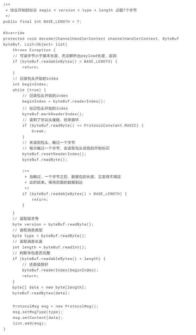 在技术选型章节中,提及了采用的通信协议,定义了私有的RPC协议: