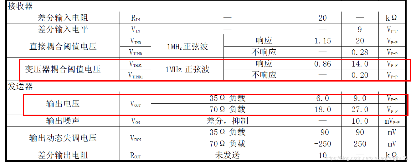 1553b通信电气特性:根据《1573总线收发器datasheet》可知,