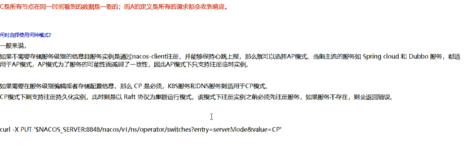 curl -X PUT '$NACOS_SERVER:8848/nacos/v1/ns/operator/switches?entry=serverMode&value=CP'