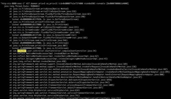 这样通过多个线程具有相同的堆栈日志,我们基本上就可以定位到该接口中比较耗时的代码的位置。