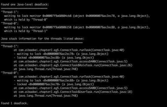 如果有死锁,会直接提示。关键字:deadlock。使用 jstack 打印线程信息会打印出业务死锁的位置。