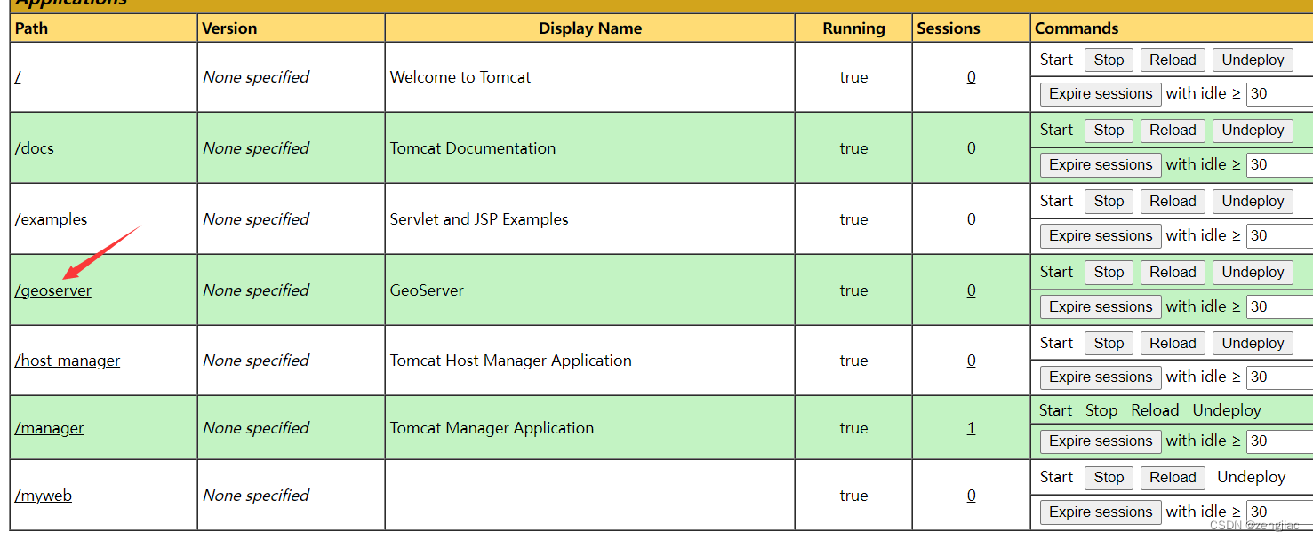 此时可以访问manager app了,点击geoserve。