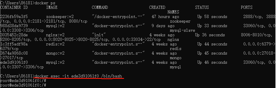 docker exec -it ede3d91061f0 /bin/bash