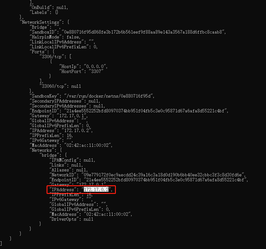 2. 查看docker容器的IP地址