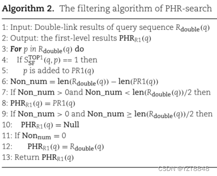 PHR-search的检测结果由PLsearch的双链和profile-link相似度提供,但双链中的非同源蛋白直接严重影响PHR-search的排序质量。为了解决双链中非同源蛋白的影响,采用基于PHR的相似性特征对检测结果进行过滤。滤波算法如算法2所示。