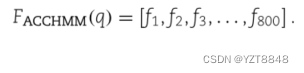 第一种表示是HMM profile的ACC特征向量,它是通过参数LG为2的ACC特征提取算法将HMM profile转换成1*800的特征向量而构建的。HMM的ACC特征可以表示为: