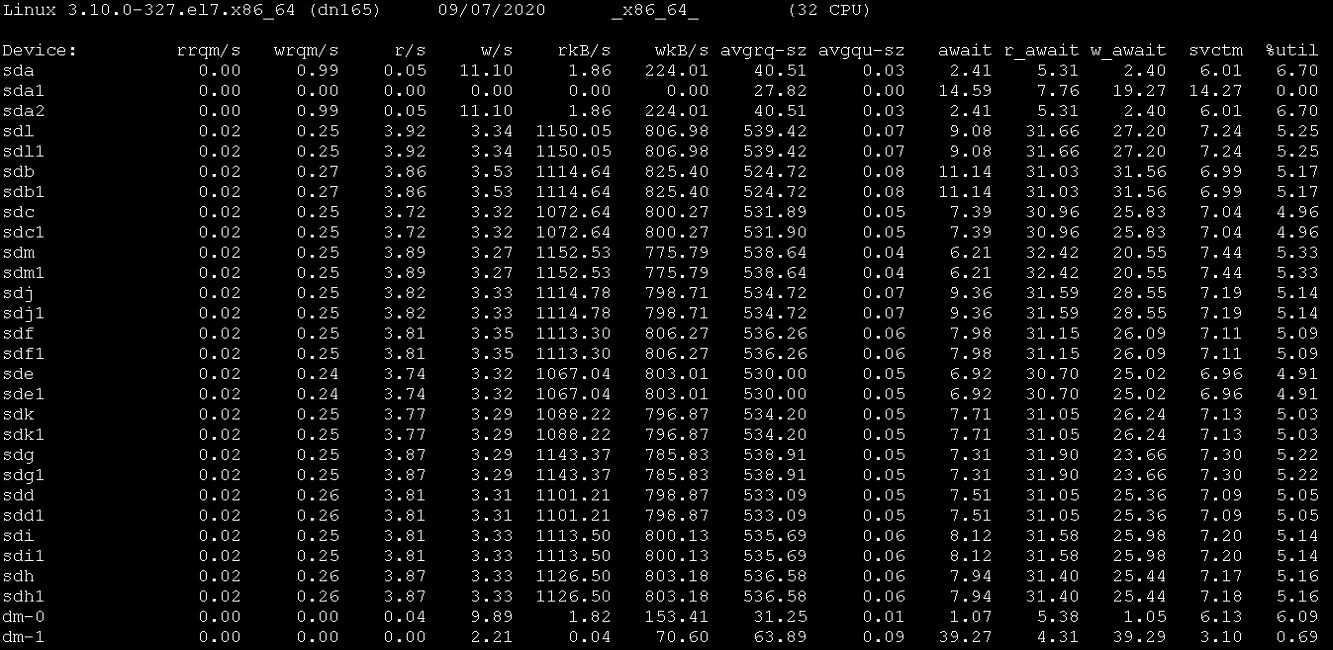 - svctm:发给设备的I/O请求的平均服务时间(以毫秒为单位)。!不再相信这个结果。该字段将在以后的 sysstat 版本中删除。