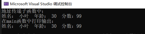 p->age = 30; //在地址传递中,修改形参,实参也会改变