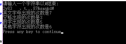printf("英文字母出现的次数是%d\n空格出现的次数是%d\n数字出现的次数是%d\n其他字符出现的次数是%d\n",n1,n2,n3,n4);