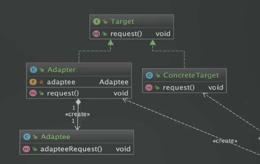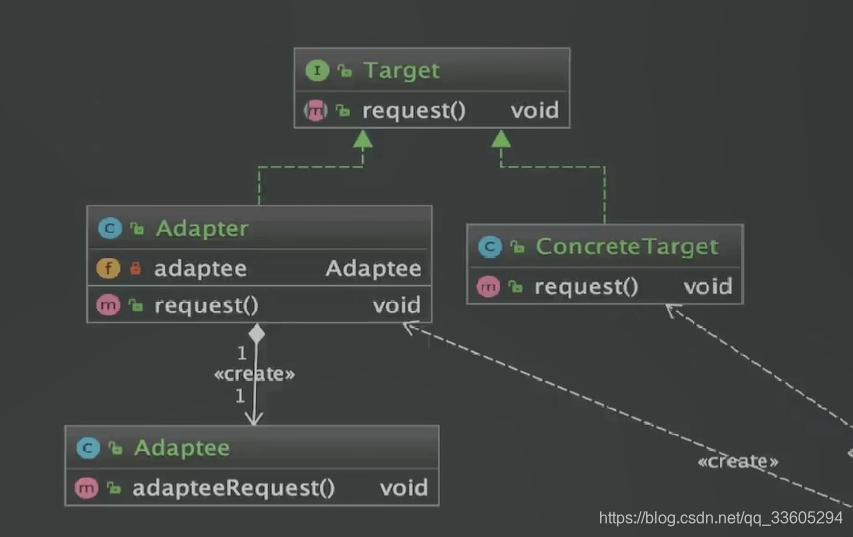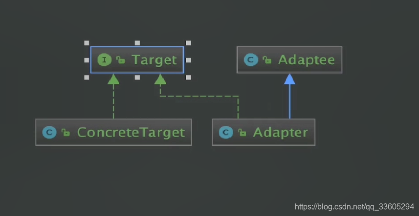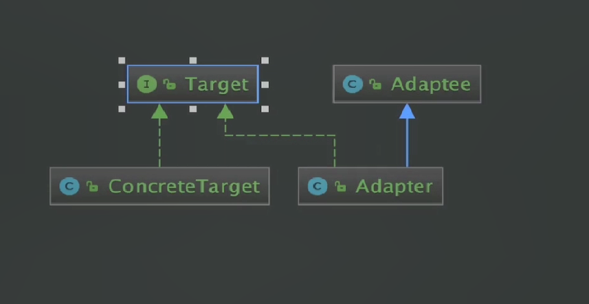类适配者模式:主要思想就是继承,令适配器(adpater)继承被适配者(adaptee)的接口,再来实现目标(target)