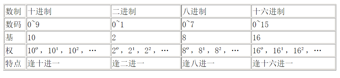 二、每种进制的组成