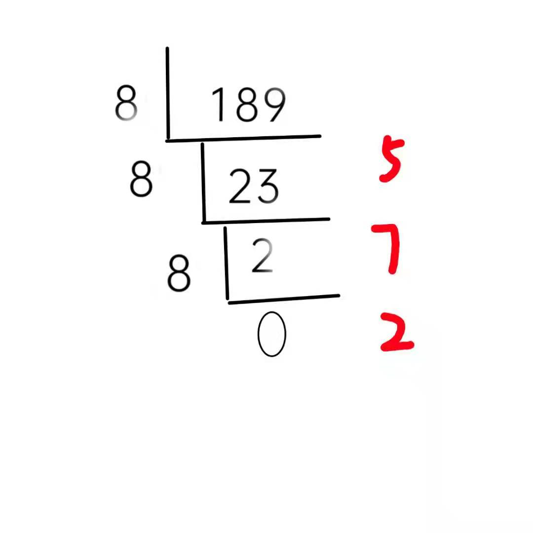 则可得到十进制189转为八进制后为275