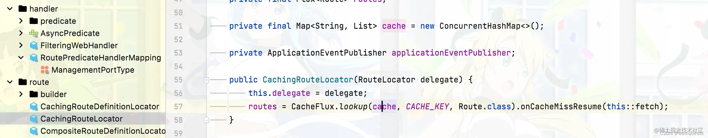 CachingRouteLocator最后还是使用RouteDefinitionRouteLocator类加载的,也是就我们上面分析的,看CachingRouteLocator就知道是缓存作用