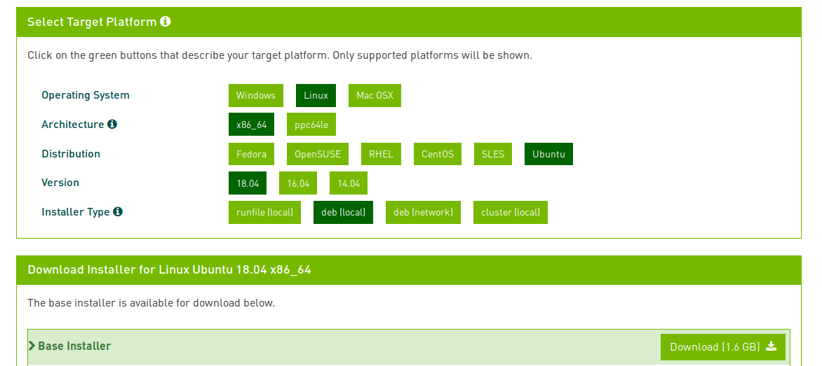 CUDA官网选择适合自己系统的版本下载。