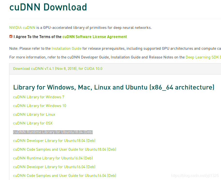 在这我选择:cuDNN Runtime Library for Ubuntu18.04 (Deb)