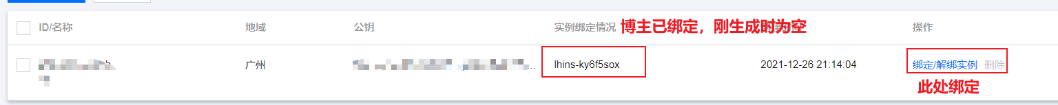 点击绑定,选择你购买的服务器名称,鹅厂就会帮你将密钥绑定到root用户上,绑定之前记得先关机~