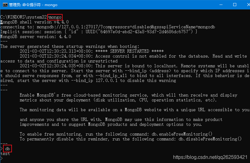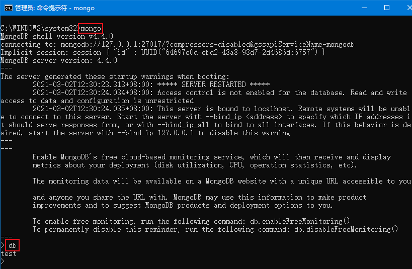 mongod --dbpath “D:\Hadoop\MongoDB\mongodb-win32-x86_64-windows-4.4.0\db”