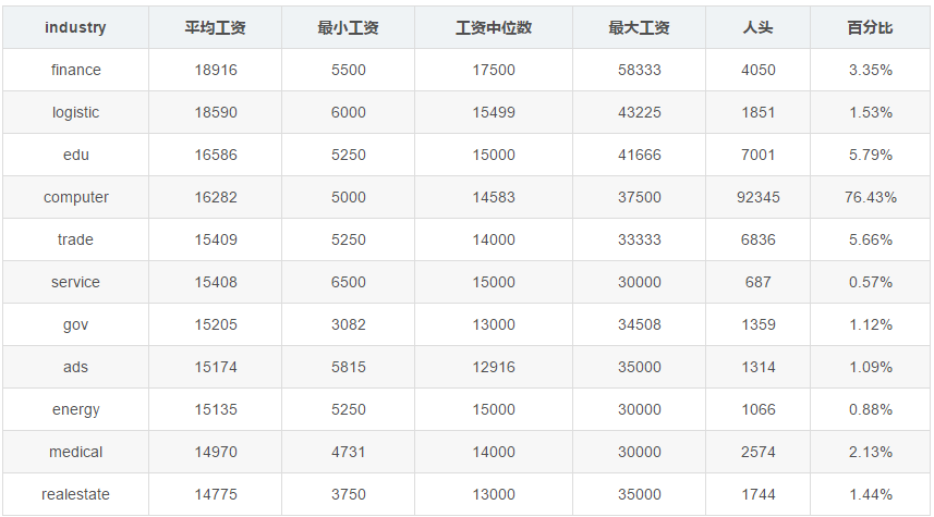金融业果然是工资最高的。