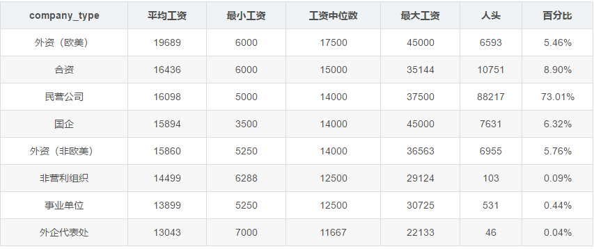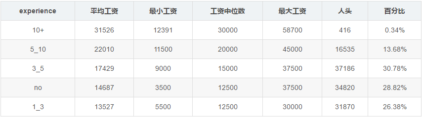 数据显示,工资会随着工作经验的增长而增长。不过,我感觉那些招十年工作经验的,基本上都是架构师等职位。如果你的工作经验是一年的工作经验重复十次,应该拿不到那么高的工资。这个以后我还会仔细分析。
