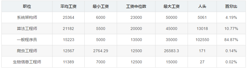 2020年中国一线城市程序员的平均工资为16285元,工资中位数为14583元,其中95%的人的工资位于5000到20000元之间。