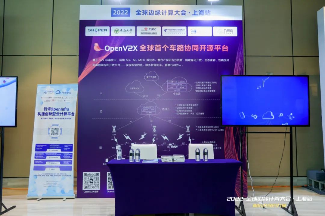在现场OpenV2X社区展示区,通过可观可感的展台展示了5G MEC和V2X深度融合的OpenV2X车路协同开源平台以及解决方案,吸引了诸多展业人士驻足参观。
