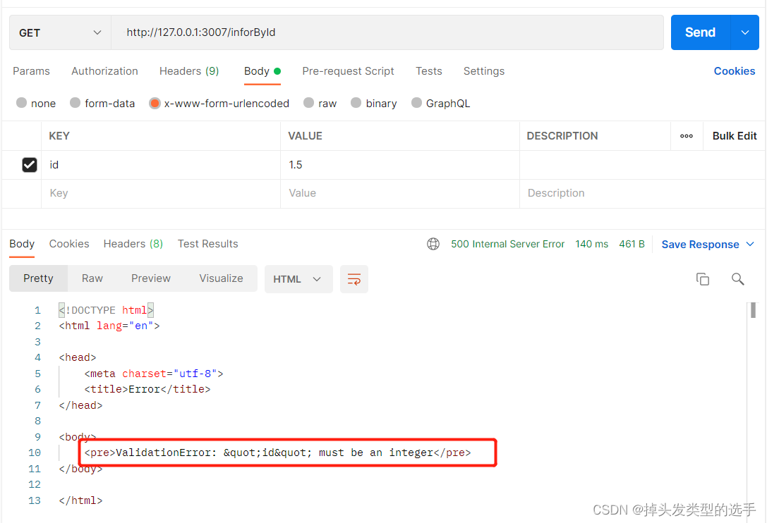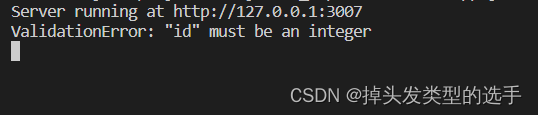 终端会有报错,报错信息是id值必须是整数。这样就校验了。