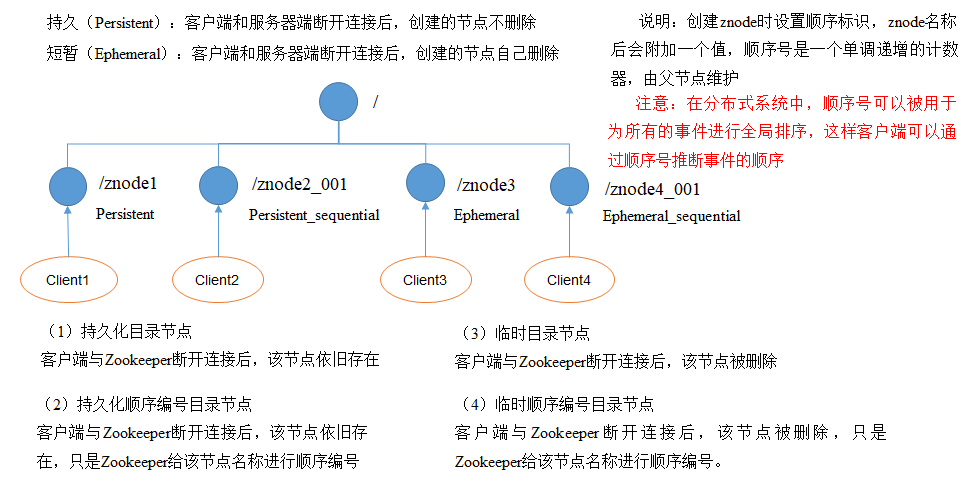 | create | 普通创建 -s 含有序列 -e 临时(重启或者超时消失) |