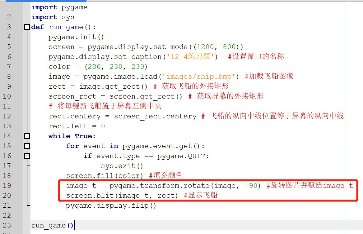 一开始是我按下方红框写代码,但是火箭并未被旋转。