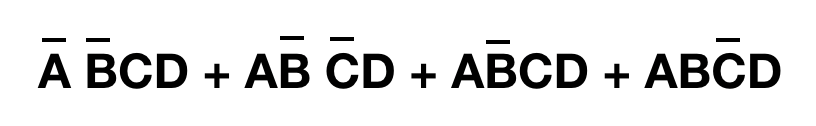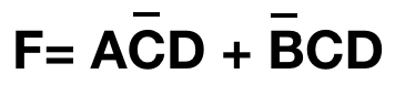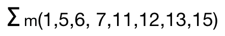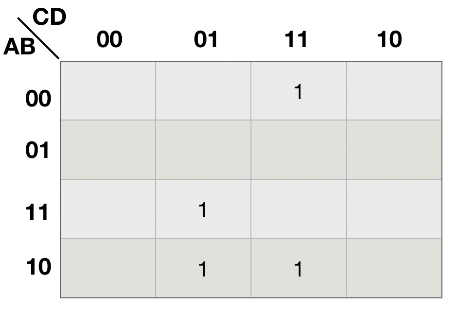 原式等于 F(A, B, C, D) = m3+m9+m11+m13