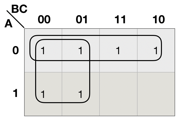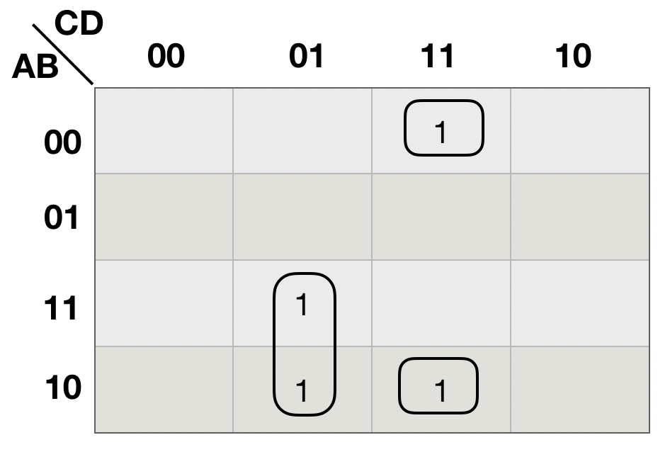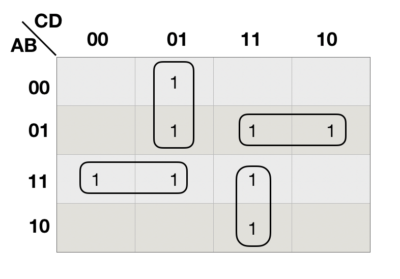 按照逻辑相邻原则画圈, 如上图(b)所示。