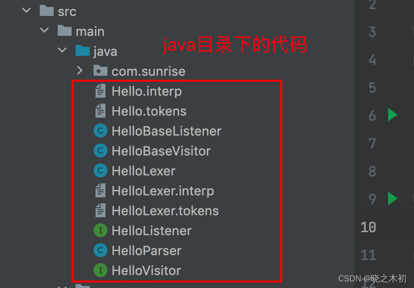 antlr4-maven-plugin的配置,将outputDirectory改为包路径<outputDirectory>${basedir}/src/main/java/com/sunrise/hello</outputDirectory>