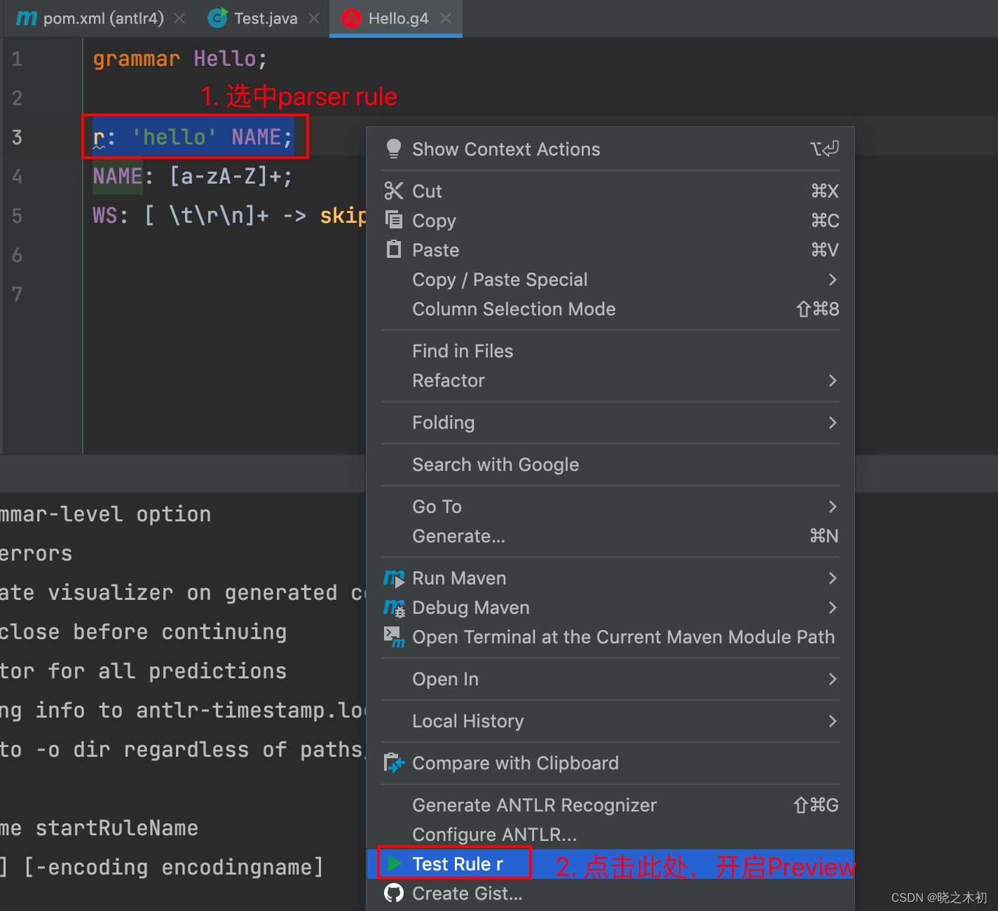- ANTLR Preview的使用: Idea 安装 antlr 插件后 ANTLR Preview 怎么用的